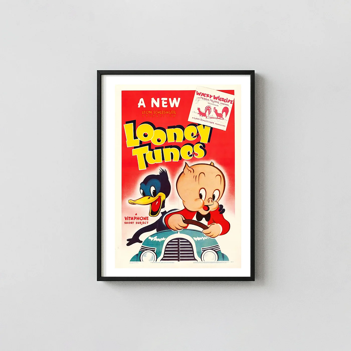 Own this iconic vintage Looney Tunes Poster featuring Porky Pig and an early duck character driving. Premium quality museum-grade wall art print—the perfect nostalgic gift!