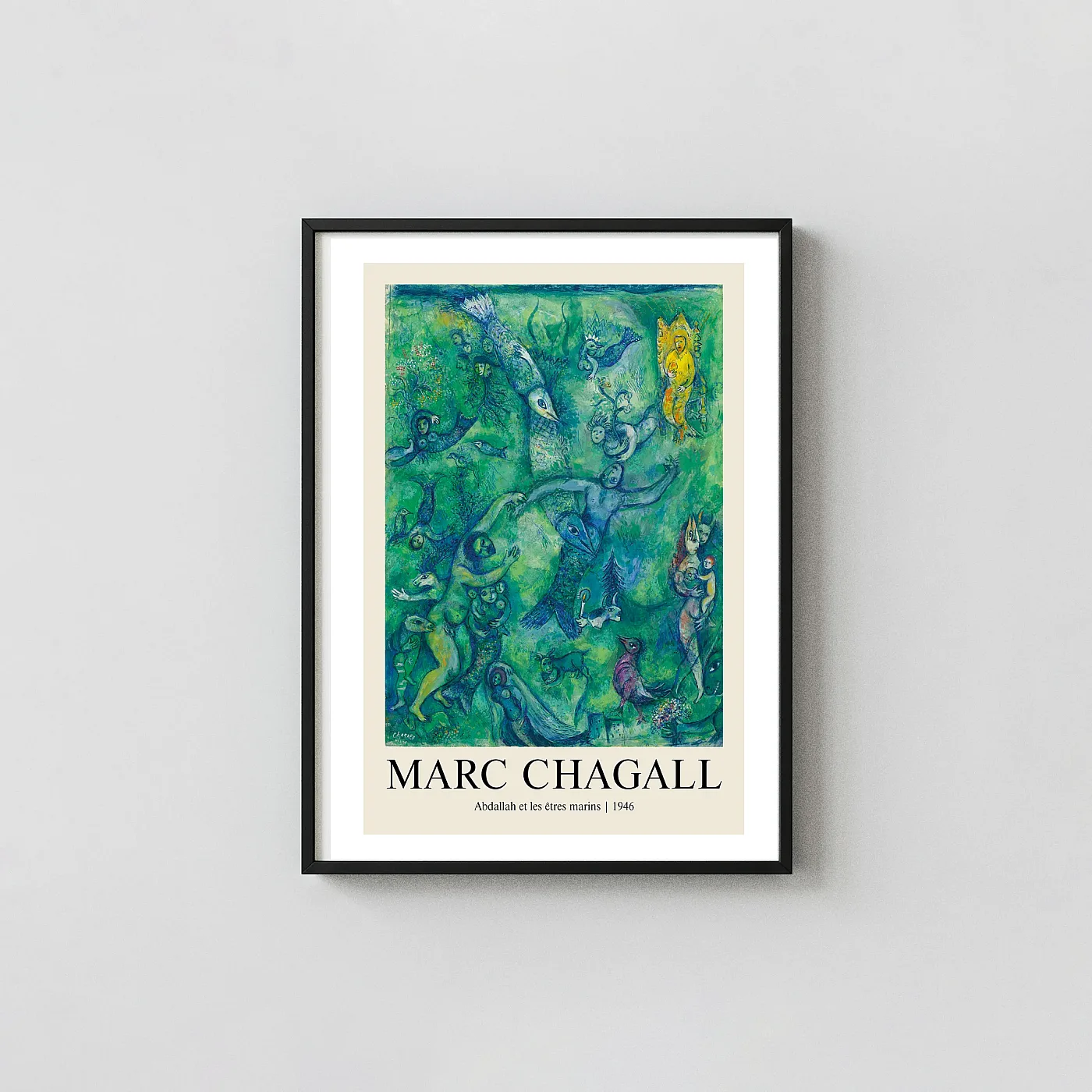 Marc Chagall art print Abdallah et les êtres marins 1946 Gallery is built for buyers who want marc chagall prints with real wall presence, not filler decor. The print is available in multiple sizes, with digital download support for faster custom framing.