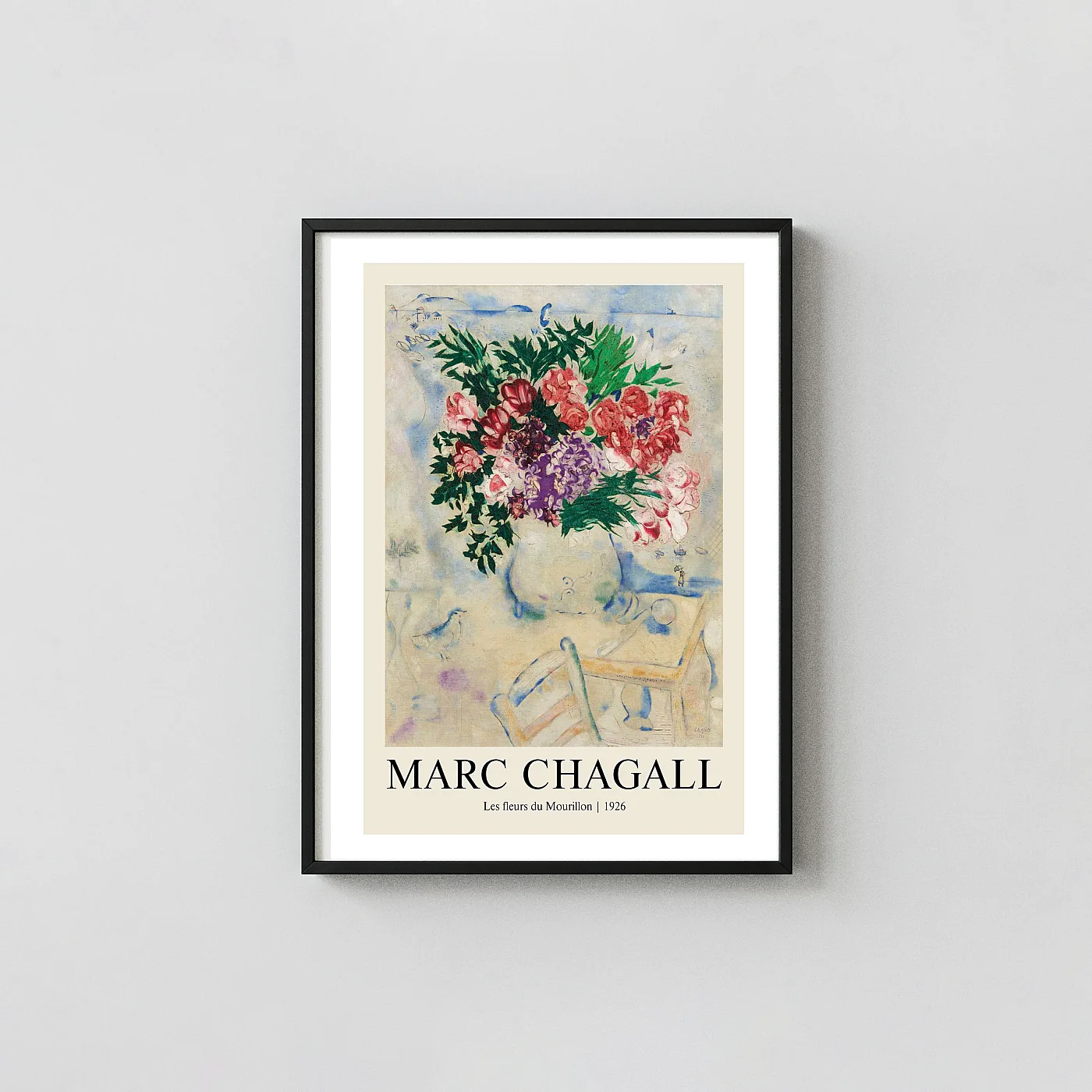 Marc Chagall art print Classic Les Fleurs du Mourillon 1926 is built for buyers who want marc chagall prints with real wall presence, not filler decor. The print is available in multiple sizes, with digital download support for faster custom framing.