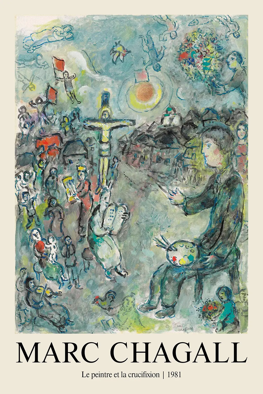 Classic Marc Chagall Art Print – Le Peintre et la Crucifixion 1981 Poster