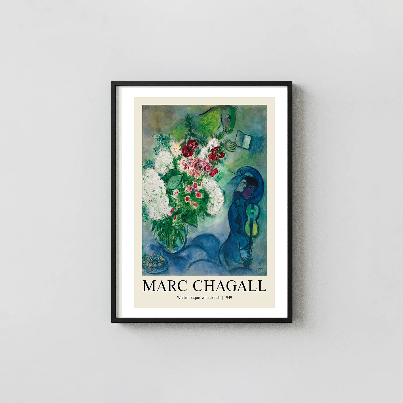 Marc Chagall art print White Bouquet with Clouds 1949 Surrealist is built for buyers who want marc chagall prints with real wall presence, not filler decor. The print is available in multiple sizes, with digital download support for faster custom framing.