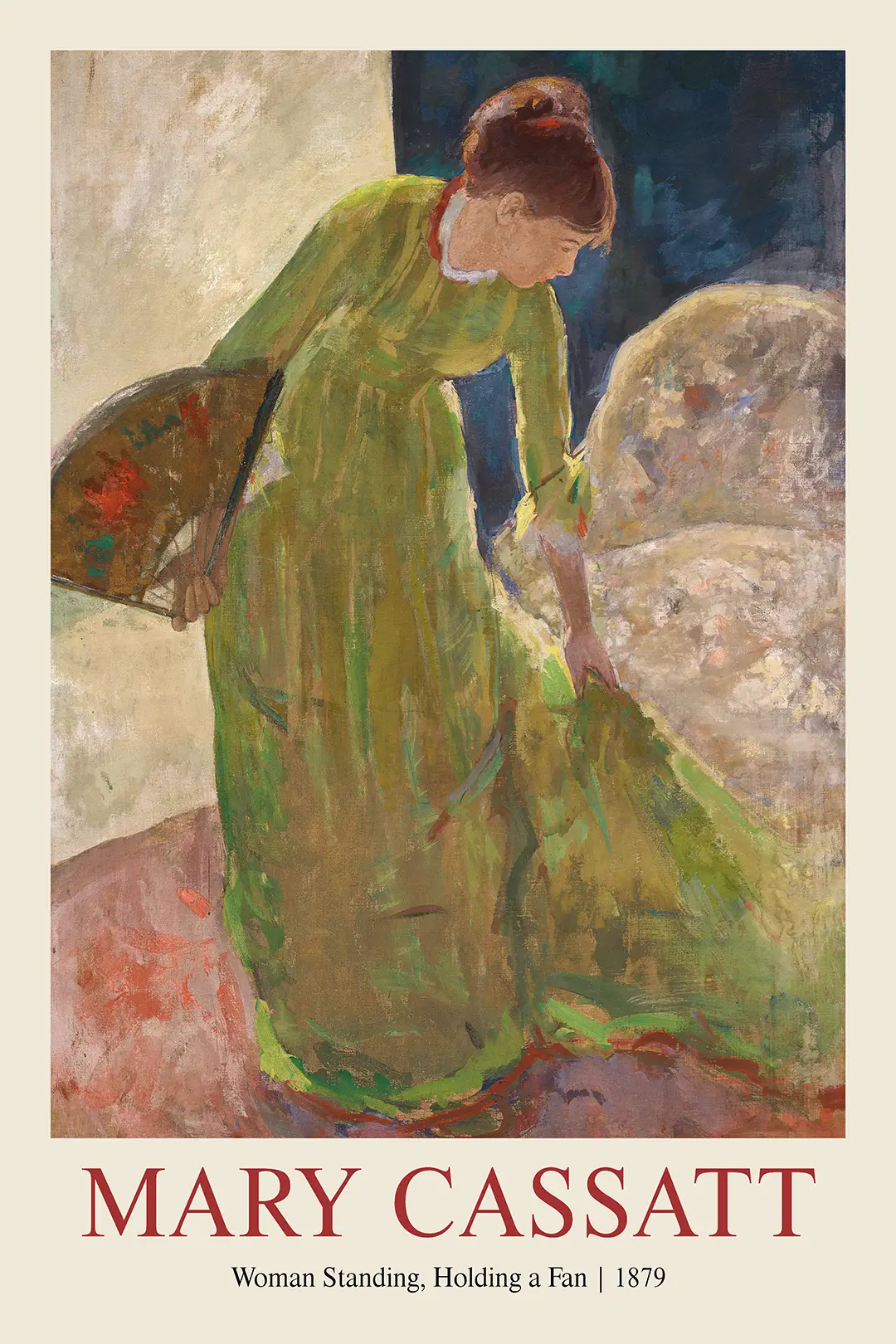 Classic Mary Cassatt print: 1879 Woman Standing Holding a Fan Poster
