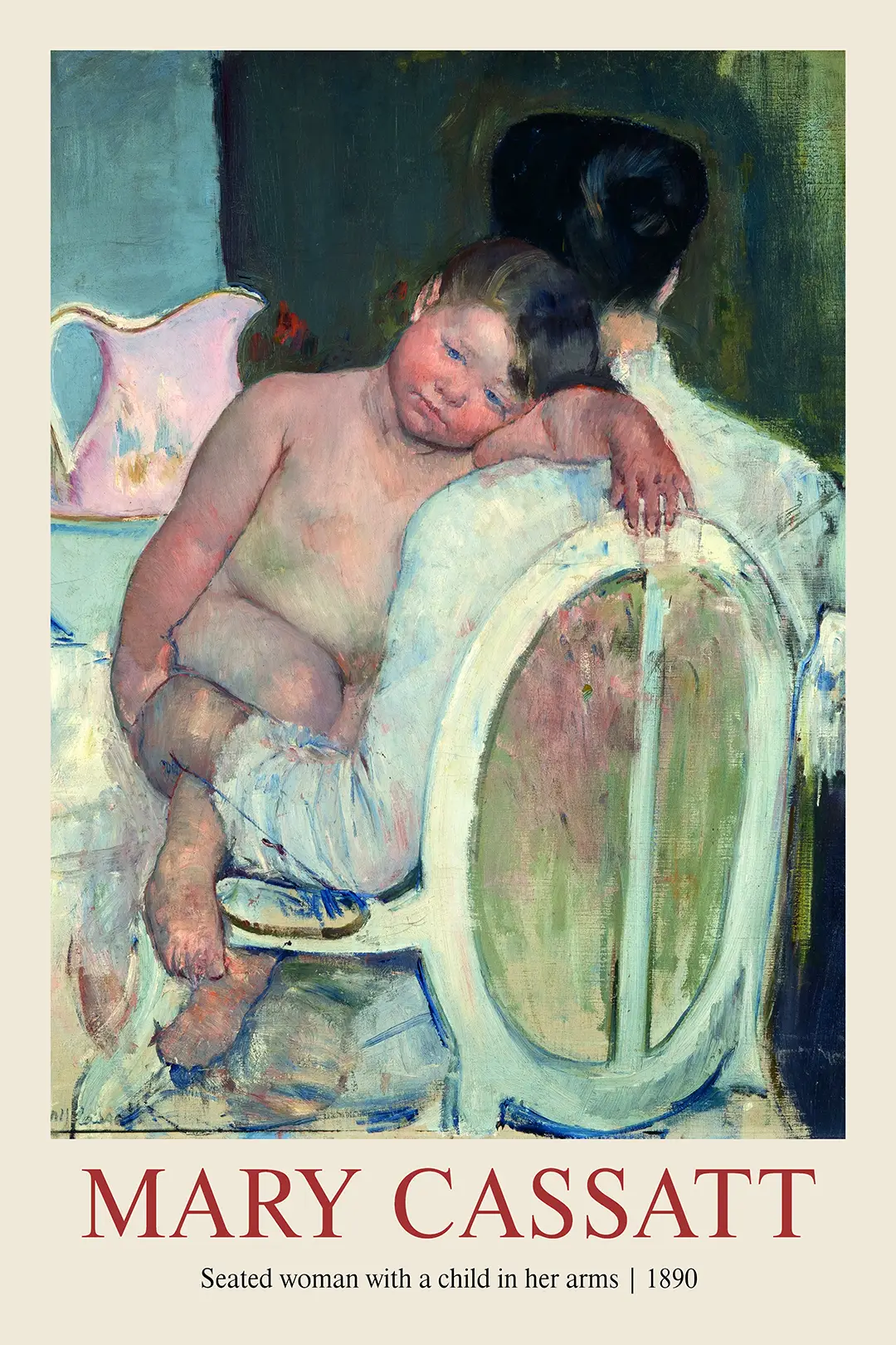 Integrating this Mary Cassatt print into your home decor is a straightforward way to introduce historical art into a modern setting. Its soft color scheme makes it particularly well-suited for spaces intended for relaxation, such as bedrooms, nurseries, or private studies. The 1890 aesthetic pairs effectively with traditional wooden furniture, yet the minimalist background and clean lines of the white chair also allow it to sit comfortably within a contemporary or transitional interior.
