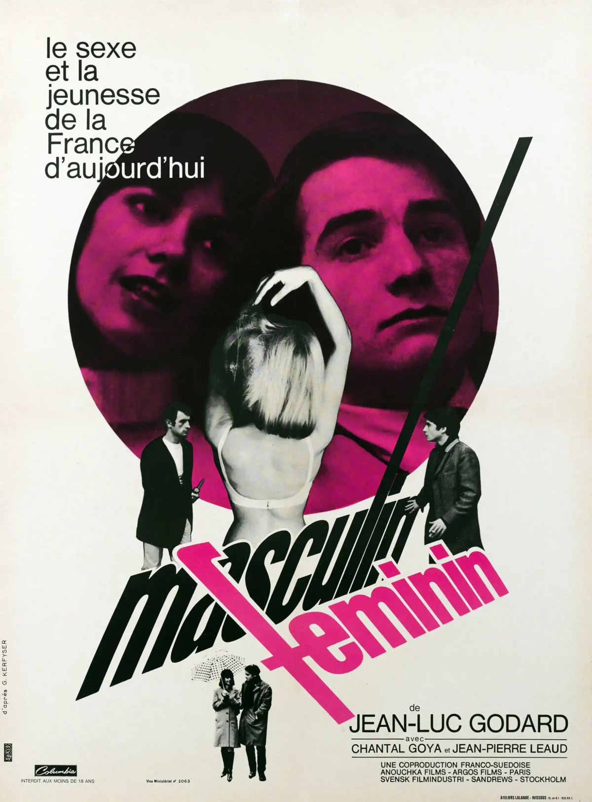 Celebrate the revolutionary cinema of Jean-Luc Godard with this stunning original 1966 Masculin Féminin film poster. This French New Wave masterpiece captured the alienation and energy of 1960s youth in Paris, famously known as “the children of Marx and Coca-Cola.” The poster’s design perfectly encapsulates the era’s raw visual style, featuring striking magenta-pink and black tones, overlaid photo collage elements, and dynamic, modernist typography. It is an essential acquisition for anyone passionate about classic French film history and bold mid-century graphic design.