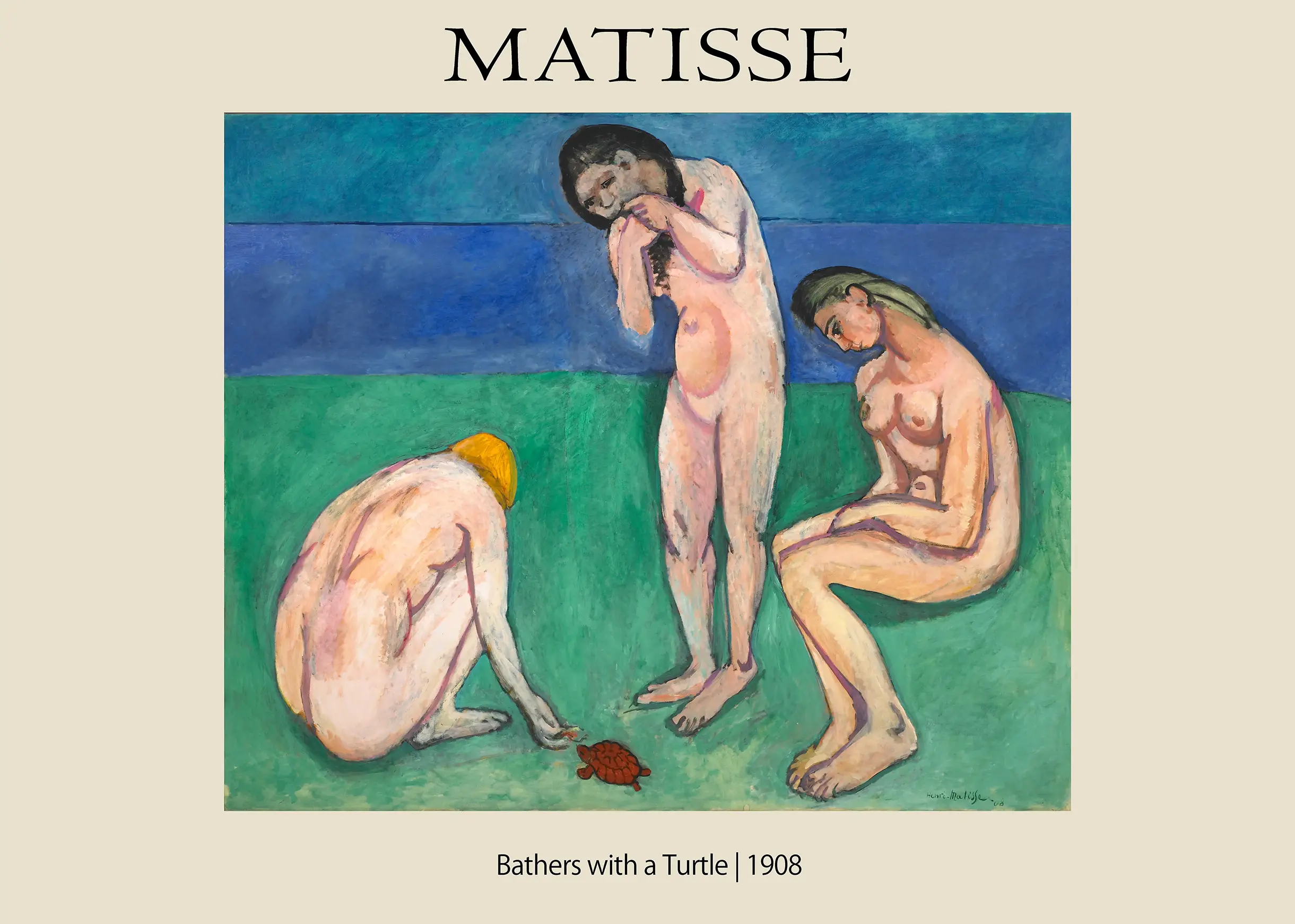 Our Matisse Bathers Turtle print captures the bold color blocks and primitive forms of the 1908 original. This museum grade fine art print is produced on 200 GSM matte paper for lasting durability.