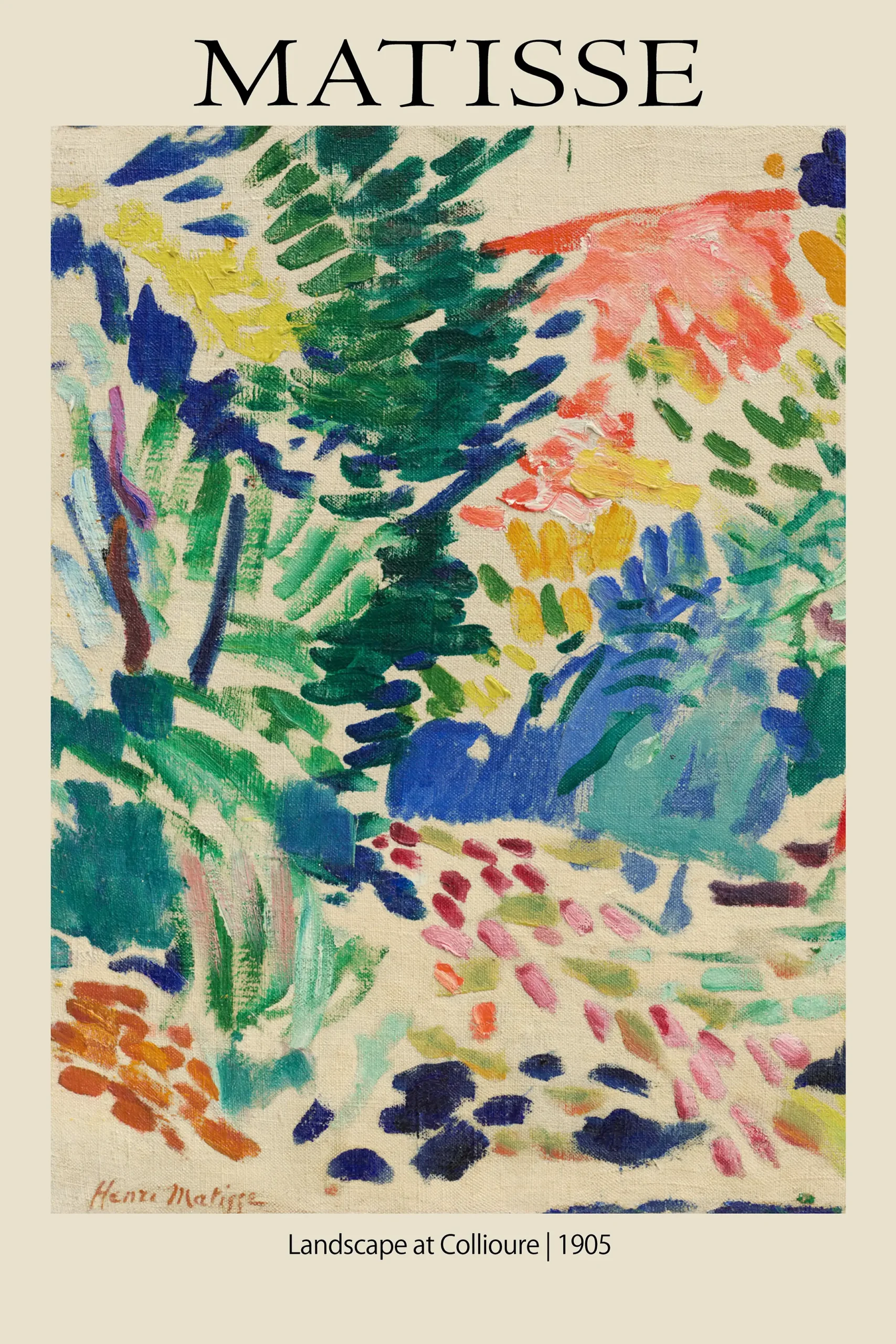 This Matisse Collioure Print showcases the radical color palette and expressive brushwork of the 1905 Fauvist movement. Our Fauvist wall art is produced on 200 GSM museum-grade matte paper with archival inks.