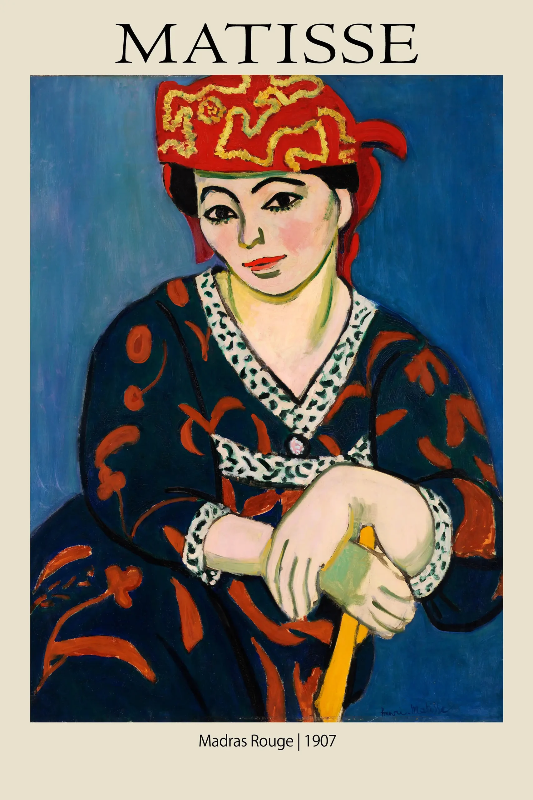 The Matisse Madras Rouge remains one of the most significant portraits of its decade, illustrating the shift toward modernism. By selecting this print, you are securing a high-quality reproduction of a work that once shocked the salon with its audacity. Today, it stands as a testament to the power of color and the enduring legacy of Henri Matisse.