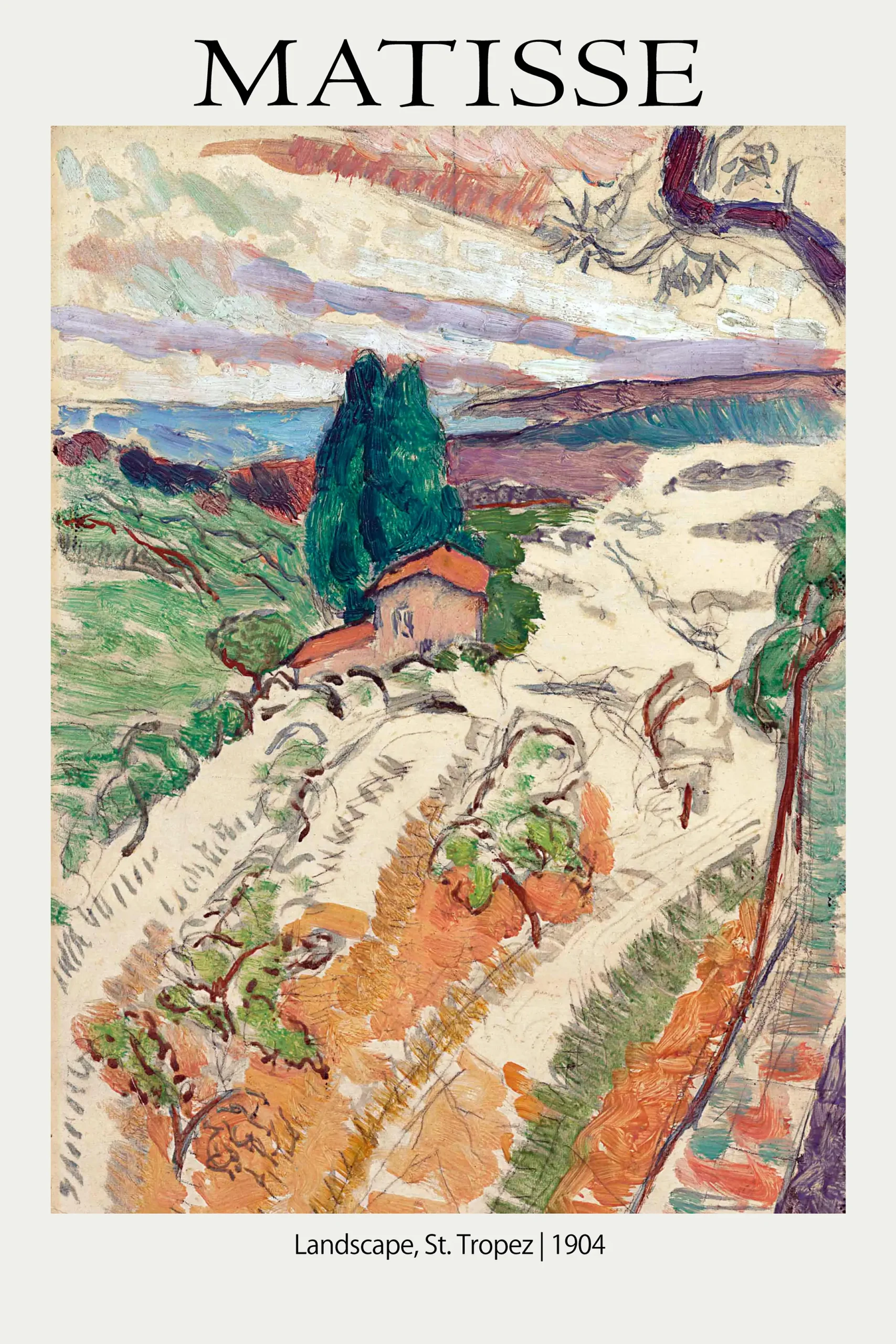 The palette of this 1904 landscape is surprisingly versatile. It complements natural wood textures, white gallery walls, and even more maximalist decor schemes. The warmth of the terracotta tones in the foreground balances the cooler sky, making it a suitable choice for bright sunrooms, bedrooms, or sophisticated office environments. This piece is not merely a reproduction; it is a historical document of the Mediterranean’s influence on the birth of modern art. Each print is handled with archival care, rolled in protective tubing, and shipped ready for the frame of your choice.