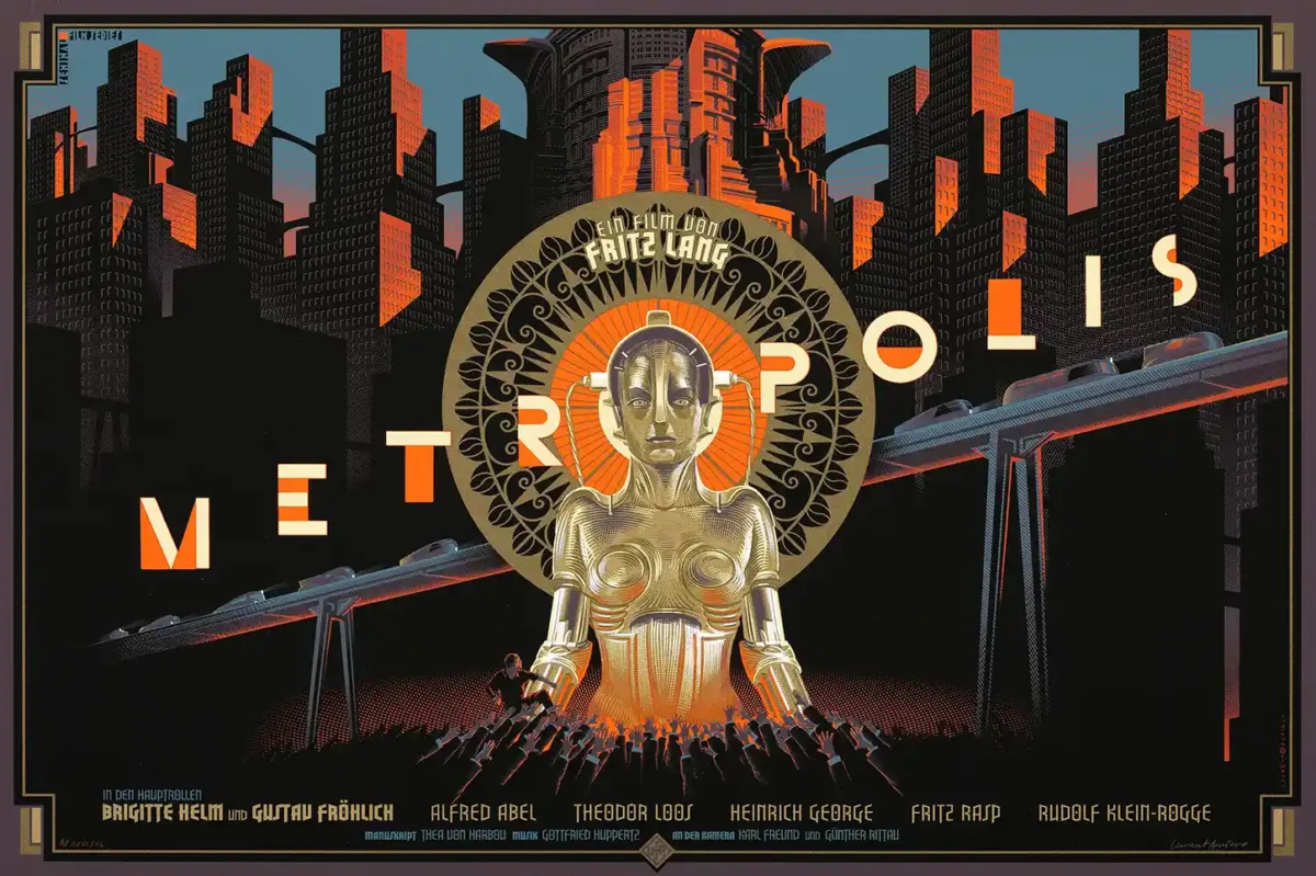 Celebrate the timeless grandeur of Fritz Lang’s 1927 masterpiece with this breathtaking poster created by acclaimed artist Laurent Durieux. Commissioned by Dark Hall Mansion, this 2013 screen print captures the haunting beauty and severe social commentary of Metropolis, arguably the most influential silent film ever made. Durieux skillfully blends the film’s German Expressionist roots with a sleek, vibrant Art Deco sensibility, transforming the classic imagery into a modern collectible.