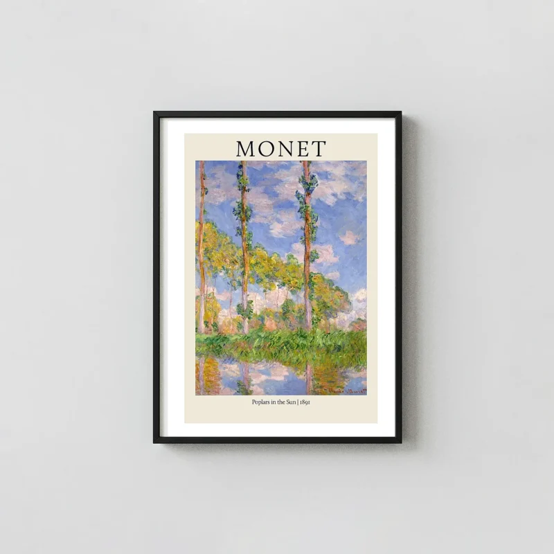 Capture the vivid light and detailed reflection of Claude Monet’s 1891 masterpiece, “Poplars in the Sun.” Perfect Impressionist wall decor for art lovers.