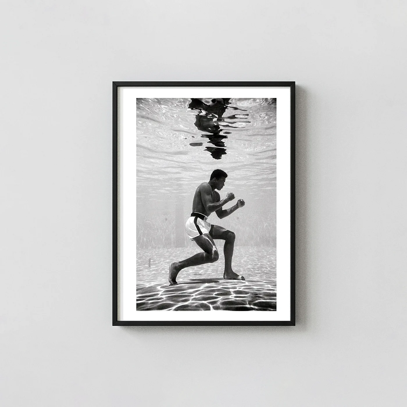 - Photographic presence: Muhammad Ali Poster, Ali Underwater by Flip Schulke, 1961 photography print gives the wall a photo-led focal point with contrast, subject detail, and a gallery-friendly finish.