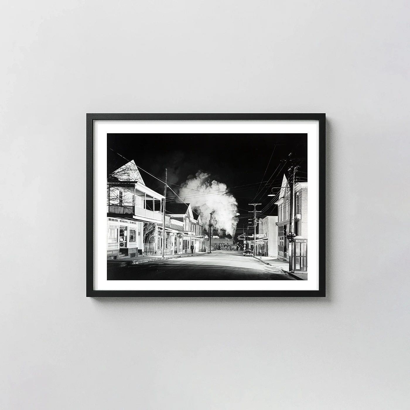 The bold contrast and mid-century Americana energy of this O. Winston Link print suit a home office, study, hallway, or living room with a vintage or industrial lean. As railroad photography art it pairs naturally with other Link images or mid-century American documentary photography. This Ghost Town Stanley print and American train print hits hardest at 16×20″ and above.
