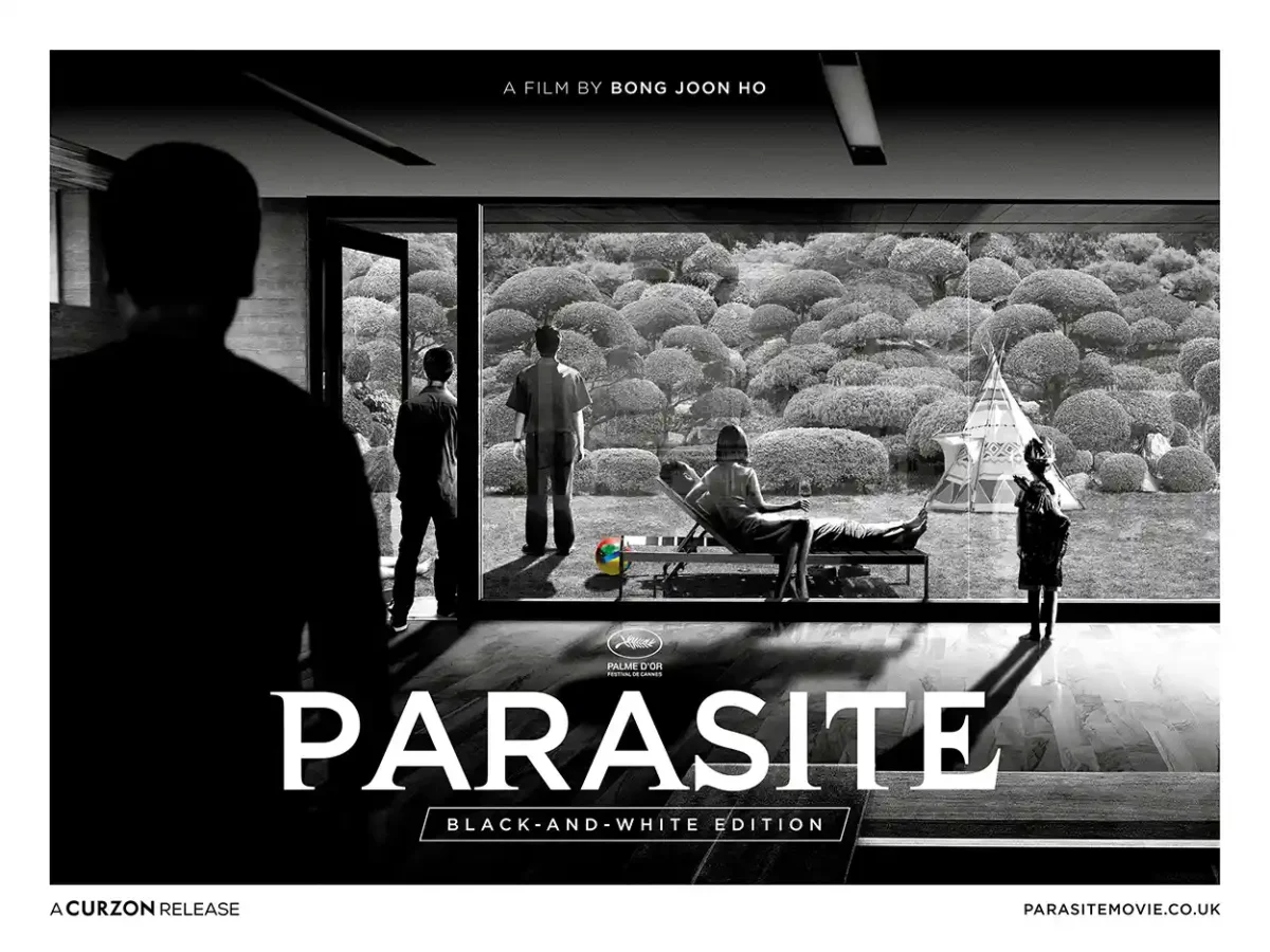 This striking black-and-white edition poster captures the iconic tension and visual sophistication of Bong Joon Ho’s Oscar-winning masterpiece, Parasite. The design focuses on the pivotal architectural setting—the massive window overlooking the Park family’s perfectly manicured garden. The high-contrast aesthetic deepens the shadows and drama, emphasizing the stark visual representation of class disparity central to the film. It is an essential piece of wall art for fans who appreciate cinematic genius and profound storytelling.