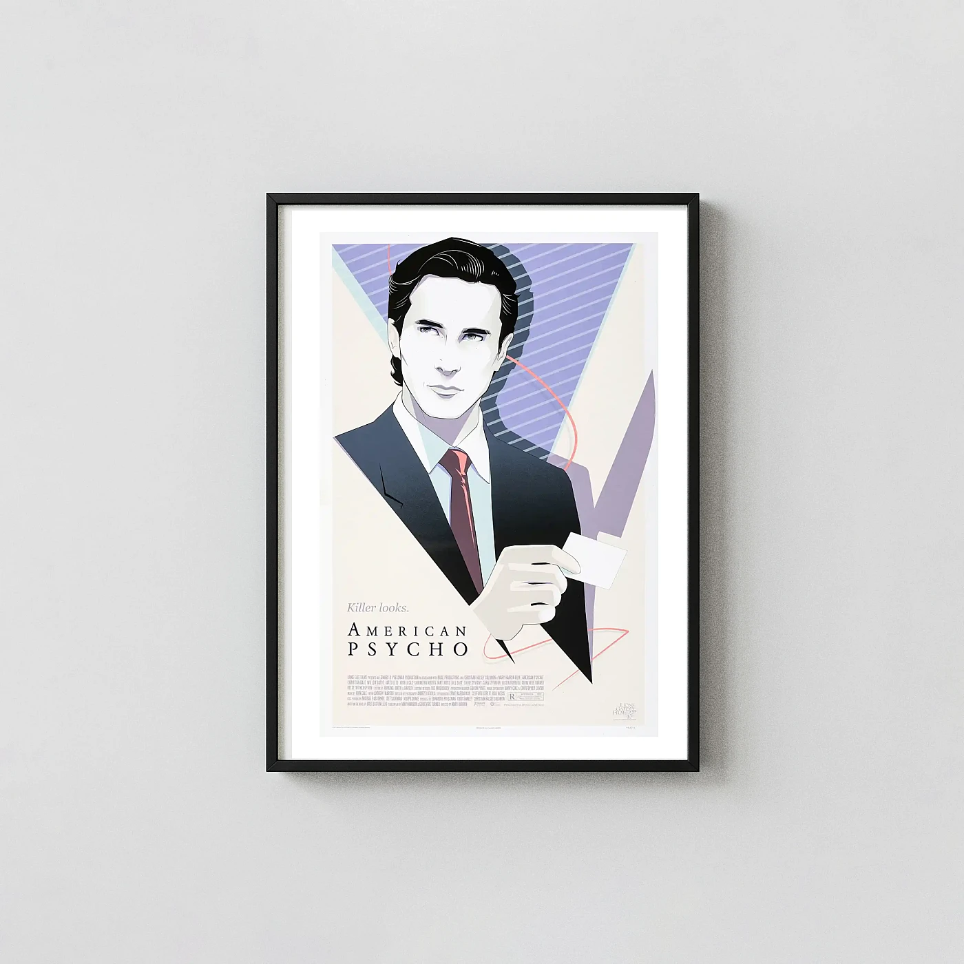 Own the definitive American Psycho poster by Craig Drake. This Mondo art print features Patrick Bateman holding his infamous business card, capturing the film’s 80s style.