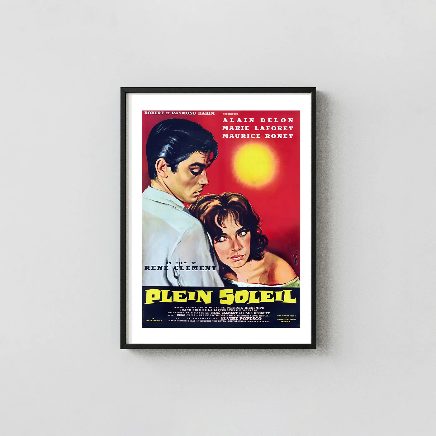 Capture the chilling beauty of the 1960 French film Plein Soleil (Purple Noon). This vintage movie poster is a premium quality print, perfect decor for classic film fans and Alain Delon enthusiasts. Shop now!