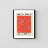 - Clean wall impact: Provence Travel & Botanical Poster Vibrant Lavender on Coral Red gives your wall a focused subject and flexible styling options.