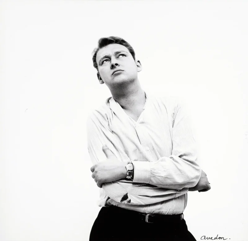 This Richard Avedon print captures Mike Nichols around 1960 — Avedon’s clean white background, precise light, and the total attention of a subject who knows how to hold a camera’s gaze.