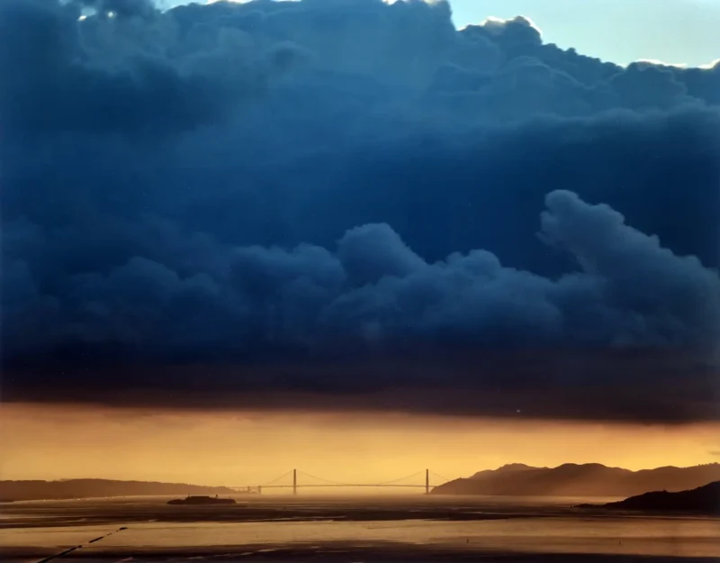 This Richard Misrach print was made on September 26, 1998 at 6:31 p.m. — Misrach’s habit of precise timestamp titling reflects his interest in photography as duration rather than decisive moment. The result is a seascape photography print that captures the exact quality of late-afternoon Pacific light: the color temperature of the water shifting, the sky at its fullest saturation before sunset. This Richard Misrach print distills that into a single frame of sustained attention.