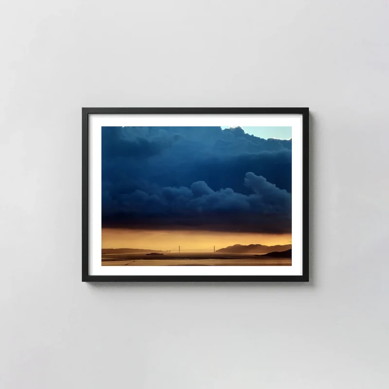 - Design & vibe: Saturated Pacific palette — deep blue-greens in the water, warm lower sky, and that particular color compression that large format photography print work achieves with 8×10 film. This seascape photography print is expansive and still simultaneously. California ocean wall art with the formal clarity of fine art landscape painting — and the documentary precision of a photographer who records the exact minute. A color landscape photography print that earns wall space at any size.