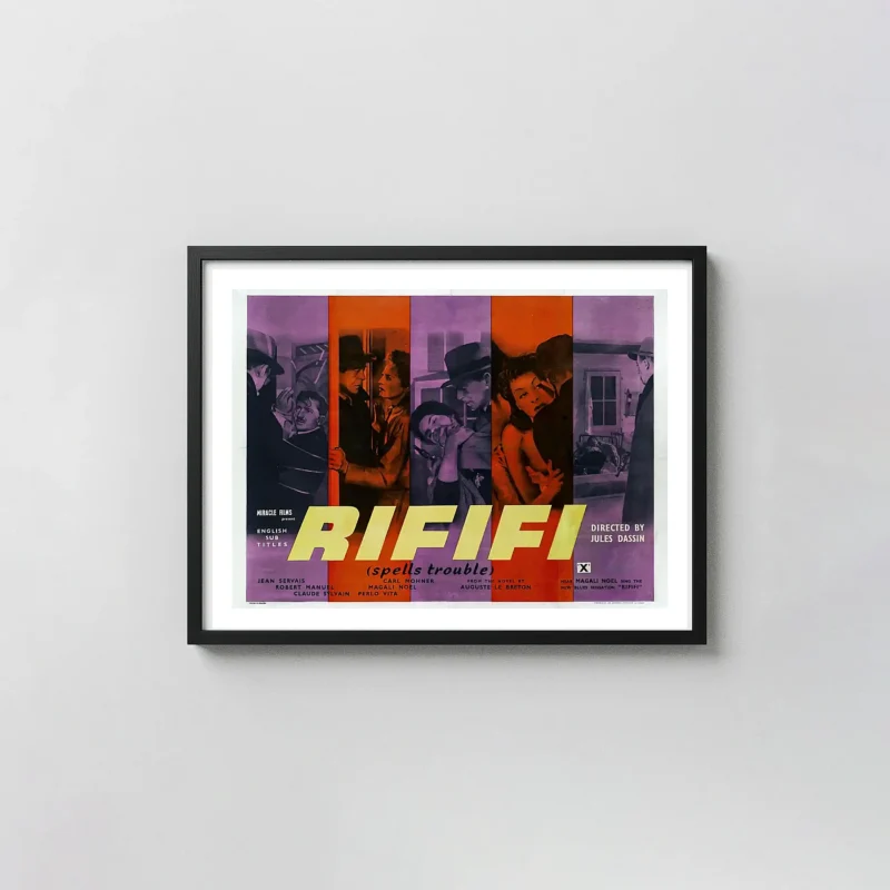 Own this iconic Rififi (Du Rififi Chez Les Hommes) movie poster. Features vintage 1955 British design. Premium quality wall art print for cinema fans. Shop now!