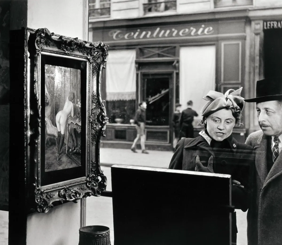 This Robert Doisneau print captures one of the most quietly funny images in photography — a man in a Paris gallery stealing a glance at a nude painting while his partner looks elsewhere.