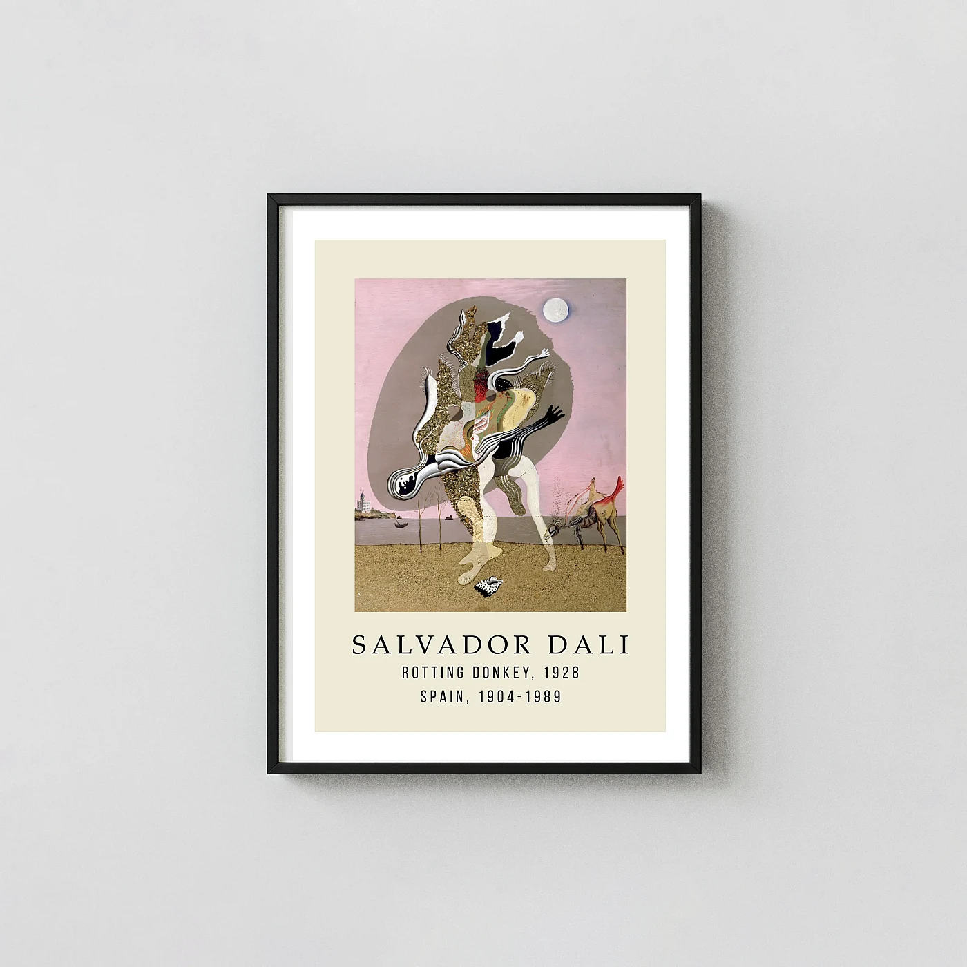 Salvador Dali art print Rotting Donkey 1928 Surrealist Mixed Media is built for buyers who want salvador dali prints with real wall presence, not filler decor. The print is available in multiple sizes, with digital download support for faster custom framing.