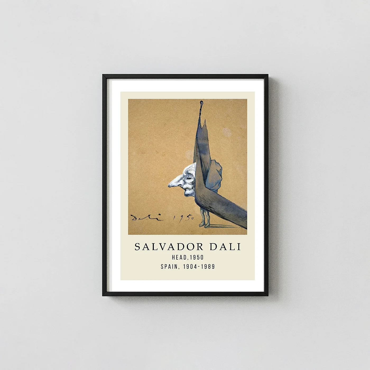Pair Salvador Dali Head 1950 art print with related MerchFuse pieces to build a tighter visual story across one wall. For sizing help, use the poster size guide; for more browsing, explore surrealist art prints and exhibition posters.