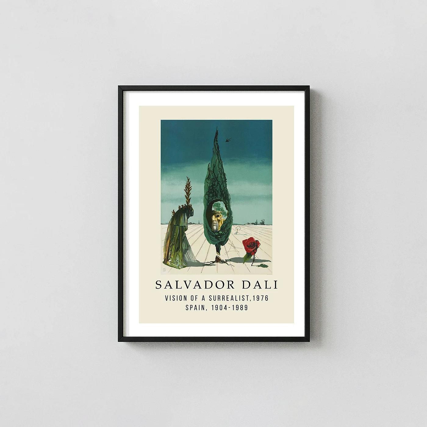 Salvador Dali Poster Vision of a Surrealist 1976 Exhibition is built for buyers who want salvador dali prints with real wall presence, not filler decor. The print is available in multiple sizes, with digital download support for faster custom framing.