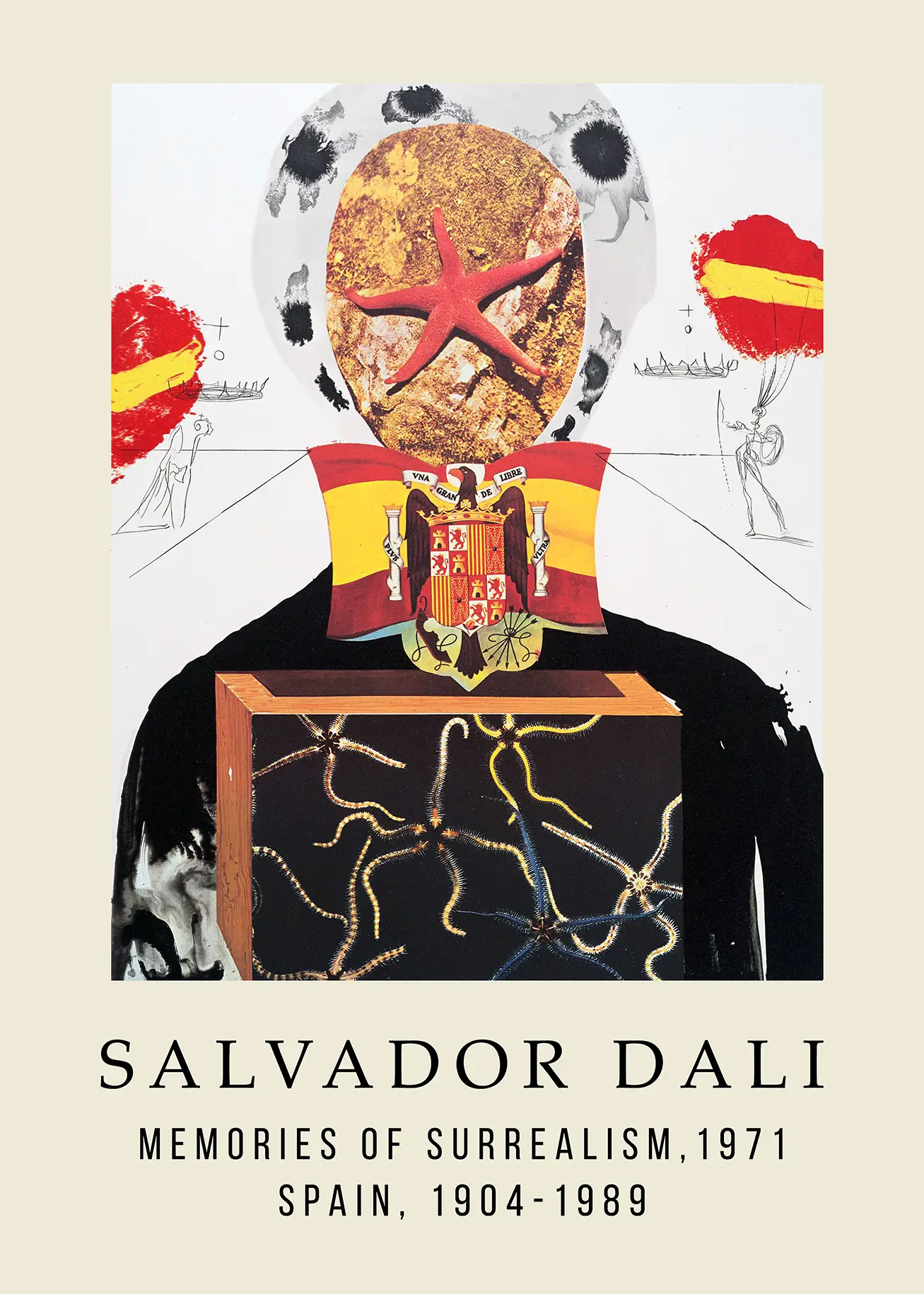 This Salvador Dali print features the iconic 1971 surrealist composition with a vibrant red starfish and Spanish symbols. Our museum quality art reproduction is produced on 200 GSM matte paper for a flat, non-reflective finish.