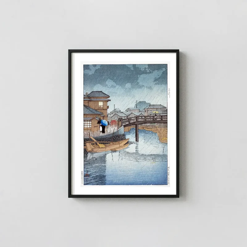 This Shinagawa Hasui Print arrives as a standard frame-ready item, allowing for easy integration into any home gallery or study. Whether displayed as a single focal point or as part of a larger collection of Japanese art, it serves as a historical window into the architectural and atmospheric past of Tokyo. The 300 DPI resolution ensures that even the smallest rain streaks and water ripples are visible, providing a professional finish for collectors of fine art photography and illustration.