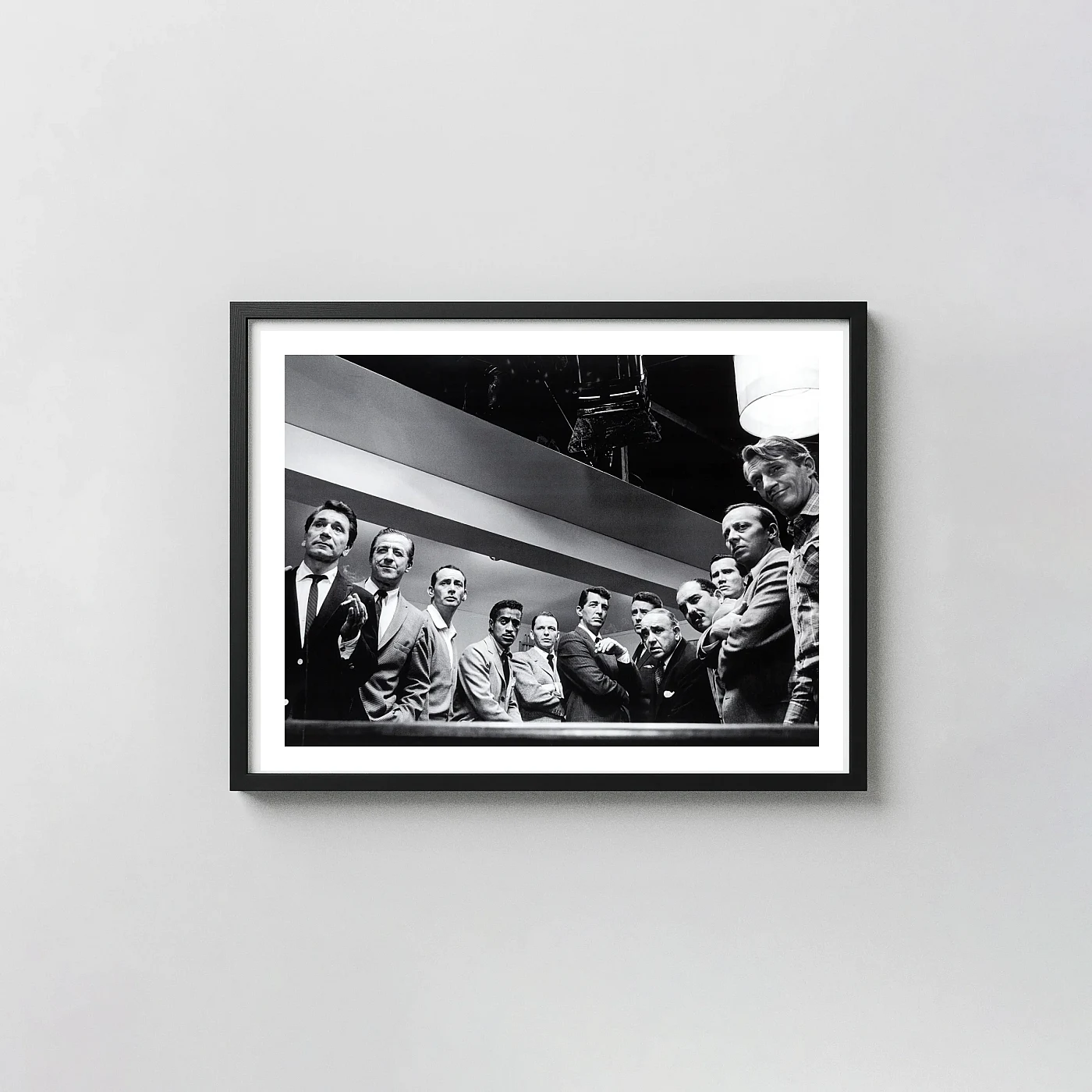 A Rat Pack photo print that works as vintage Hollywood art with real insider quality: this Ocean’s Eleven print is not a promo still but a celebrity photo print made by a photographer who was part of that world.