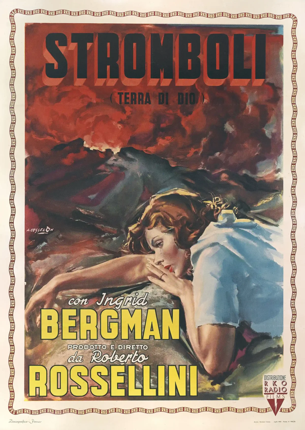 Capture the intense drama of Roberto Rossellini’s 1950 cinematic masterpiece, Stromboli (Terra di Dio). This stunning vintage wall art print features the legendary Ingrid Bergman in a gripping pose, set against the fiery, brooding backdrop of the active volcano. It perfectly embodies the turmoil and isolation central to this landmark Italian neorealist film. Whether you are a dedicated follower of classic Hollywood or an admirer of European cinema, this iconic piece is essential decor.