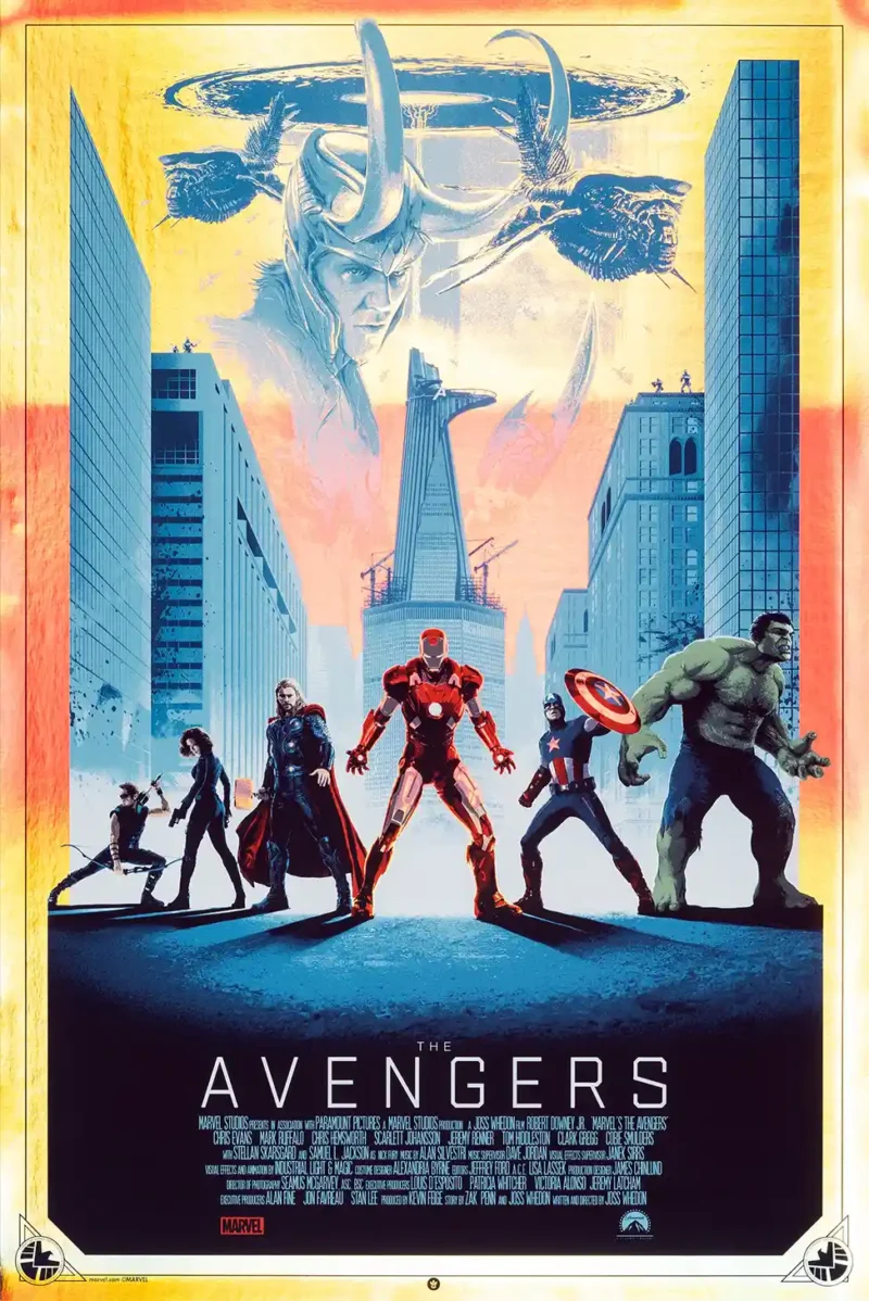 The Avengers Movie Poster | Chitauri Invasion Screen Print Art | Marvel Heroes Assemble