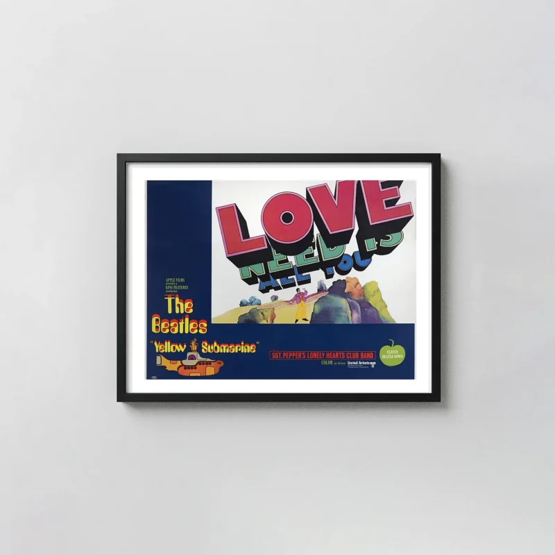 Relive the magic of The Beatles’ Yellow Submarine with this iconic 1968 movie poster. Featuring the "Love All You Need Is" lyric. Premium quality poster, perfect gift for music fans. Shop now!