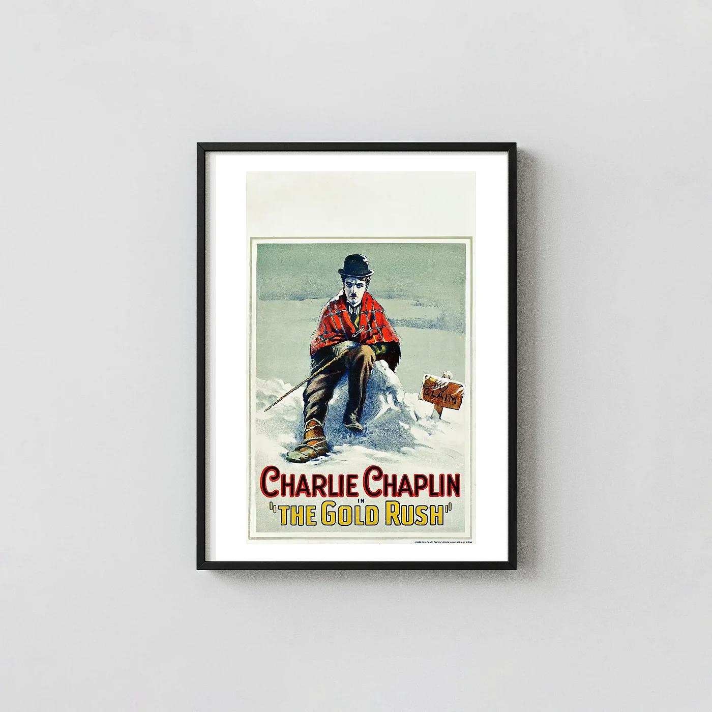 Capture the timeless genius of silent film with this stunning vintage poster for Charlie Chaplin’s 1925 masterpiece, The Gold Rush. This iconic artwork features The Tramp, wrapped in a characteristic red plaid shawl and bowler hat, sitting resiliently atop a snowdrift next to his marked ‘MY CLAIM’ sign. The poster perfectly embodies the film’s blend of slapstick comedy, deep pathos, and the harsh realities of the Klondike adventure. It serves as a powerful piece of classic cinema history, celebrating one of the most beloved characters ever put to screen.