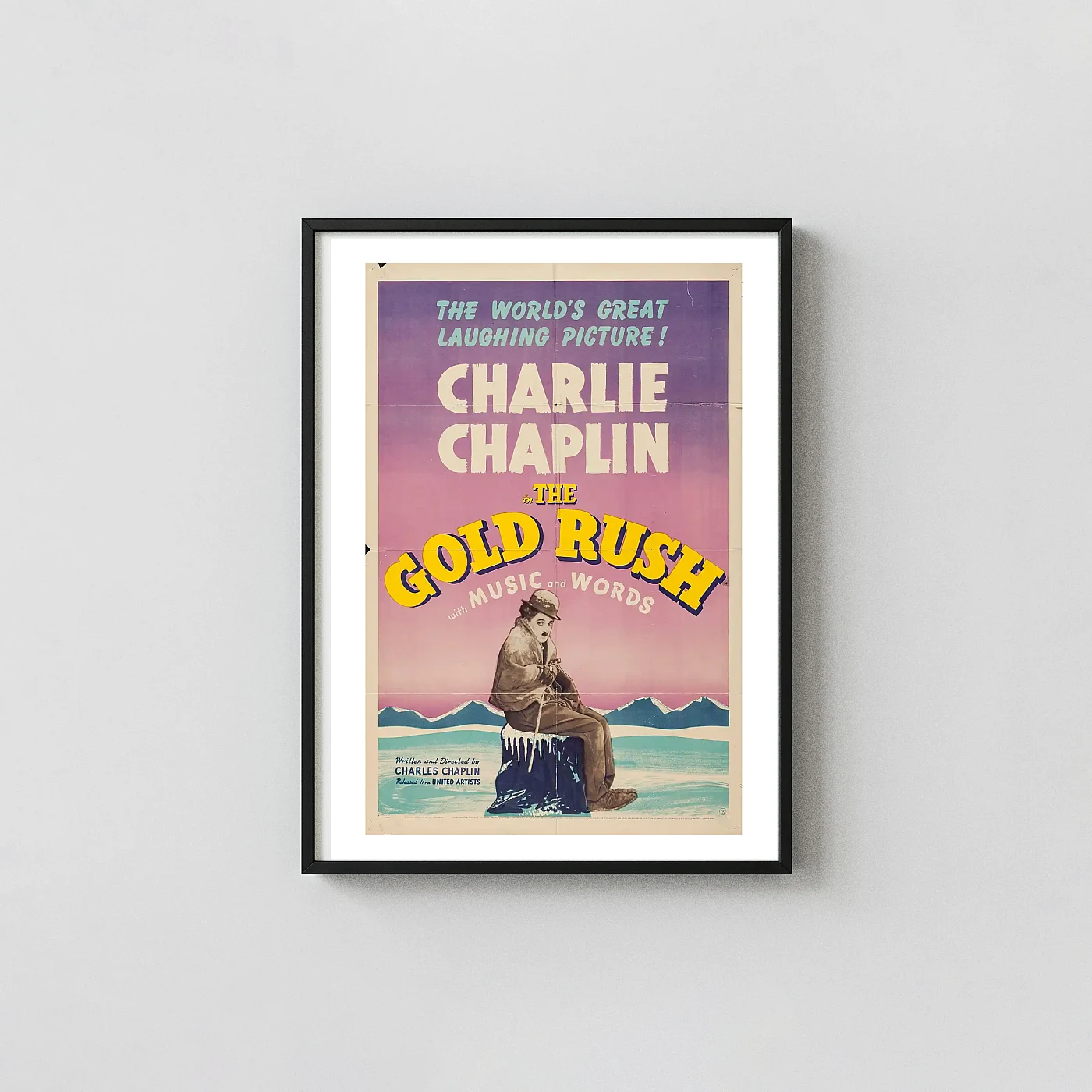 Relive cinematic history with The Gold Rush poster featuring Charlie Chaplin’s Tramp. Premium quality vintage movie wall art, perfect decor for film lovers. Buy now!