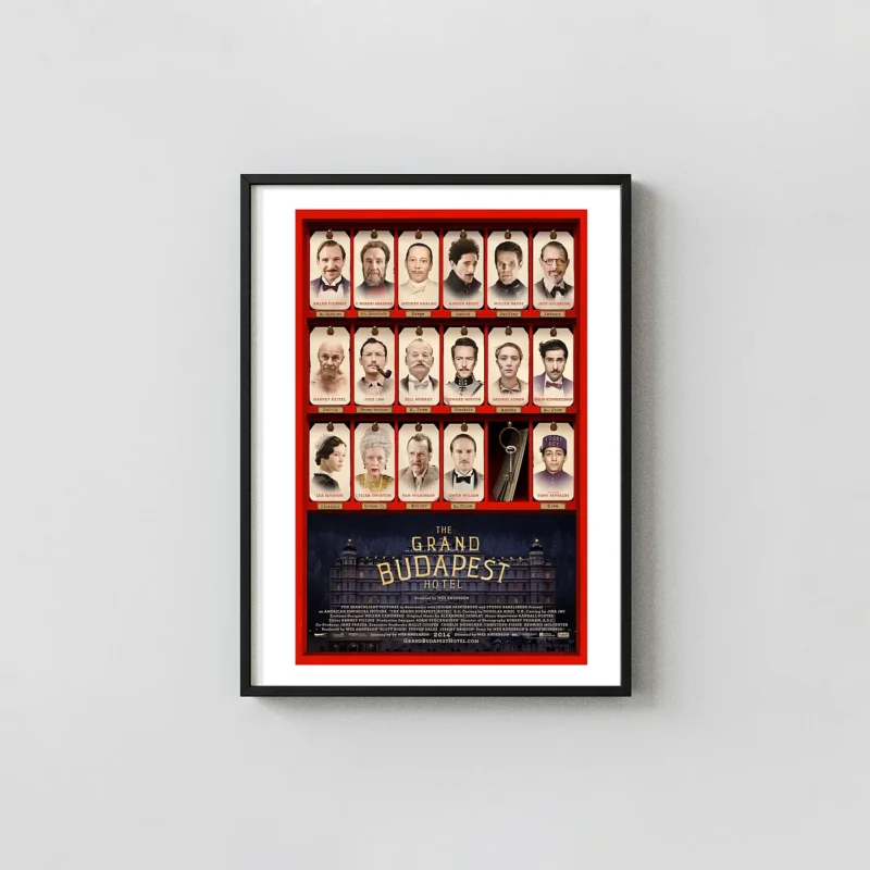Celebrate Wes Anderson’s masterpiece with The Grand Budapest Hotel poster. Premium quality wall art featuring the star-studded cast key tags. Perfect gift for film lovers. Shop now!