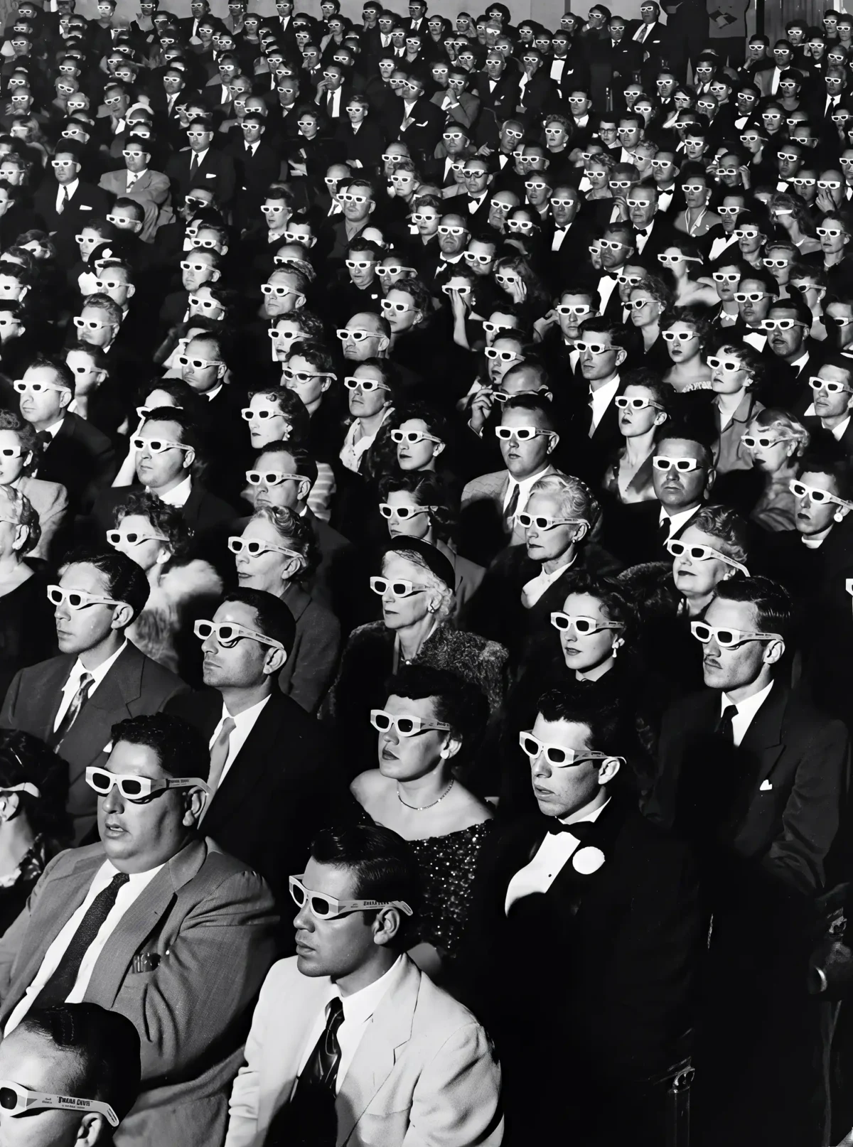 Shot in high-contrast black and white, this opening night screening photography print belongs to the golden era of cinema: the decades when going to the pictures was a public event, a dressed-up occasion, and a collective ritual rather than a private stream.