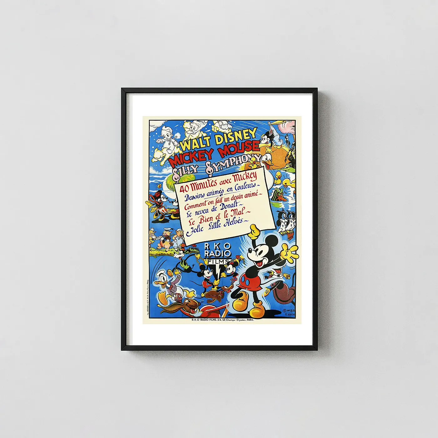 Own this rare 1938 French Walt Disney Mickey Mouse Silly Symphony poster. Premium quality vintage wall art print featuring classic characters. Perfect decor or gift!