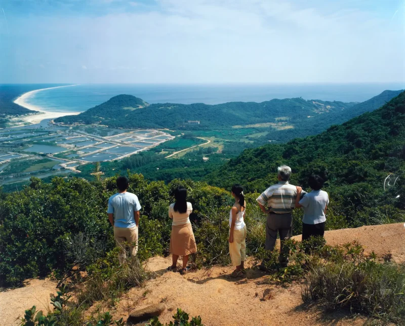 - Design & vibe: Large-scale color composition — the figure from behind, the vast urban or coastal landscape filling the frame, the horizon line doing the emotional work. This urban landscape photo is Chinese contemporary art at its most formally resolved. Staring at the Sea print with the stillness of a long exposure and the weight of a generational moment. Fine art photography that places a single human being against an entire era of change.