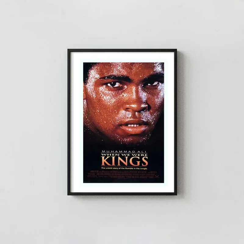 Relive the raw energy and historical significance of ‘The Rumble in the Jungle’ with this powerful poster for the 1996 Academy Award-winning documentary, When We Were Kings. Featuring an iconic, sweat-drenched close-up of Muhammad Ali’s face, this wall art captures the intensity, determination, and focus of ‘The Greatest’ before his legendary fight against George Foreman. This visual masterpiece serves as a potent symbol of resilience, making it a must-have piece of decor for boxing fans, sports historians, and documentary film enthusiasts.