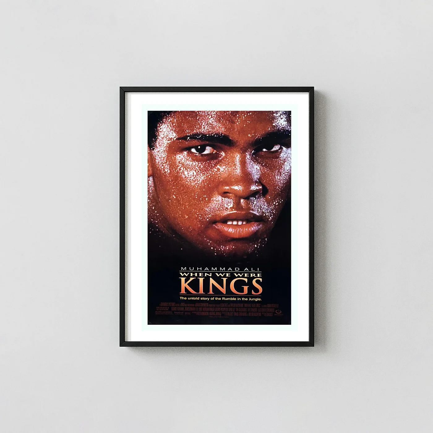 Capture the raw intensity of the 1996 documentary When We Were Kings. This Muhammad Ali Poster features the iconic, sweaty close-up. Premium quality wall art print. Perfect gift for boxing fans. Shop now!