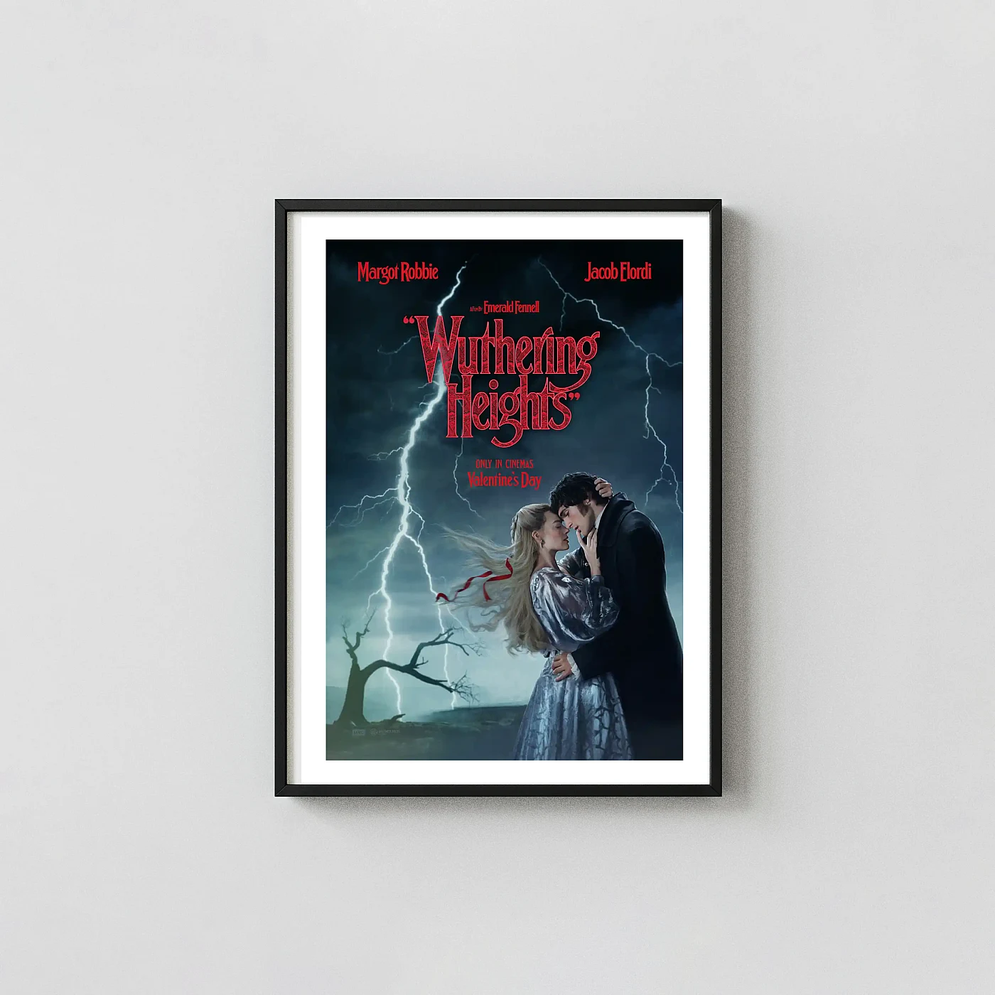 Relive the intense romance of Wuthering Heights with this stunning movie poster featuring Margot Robbie and Jacob Elordi. Premium quality print for ultimate gothic wall decor. Shop now!