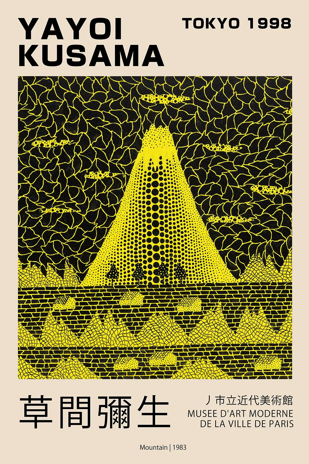 The 1983 ‘Mountain’ series is often cited as a bridge between the artist’s early surrealism and her later global pop-art success. Collectors of the Yayoi Kusama Mountain poster appreciate the historical weight of the 1998 Tokyo exhibition text, which commemorates the longevity of her creative output. The juxtaposition of the traditional Japanese subject matter with the avant-garde dot technique highlights the tension between nature and the infinite. By adding a Yayoi Kusama Mountain poster to your collection, you are securing a piece of art history that continues to influence the worlds of fashion, design, and contemporary sculpture.