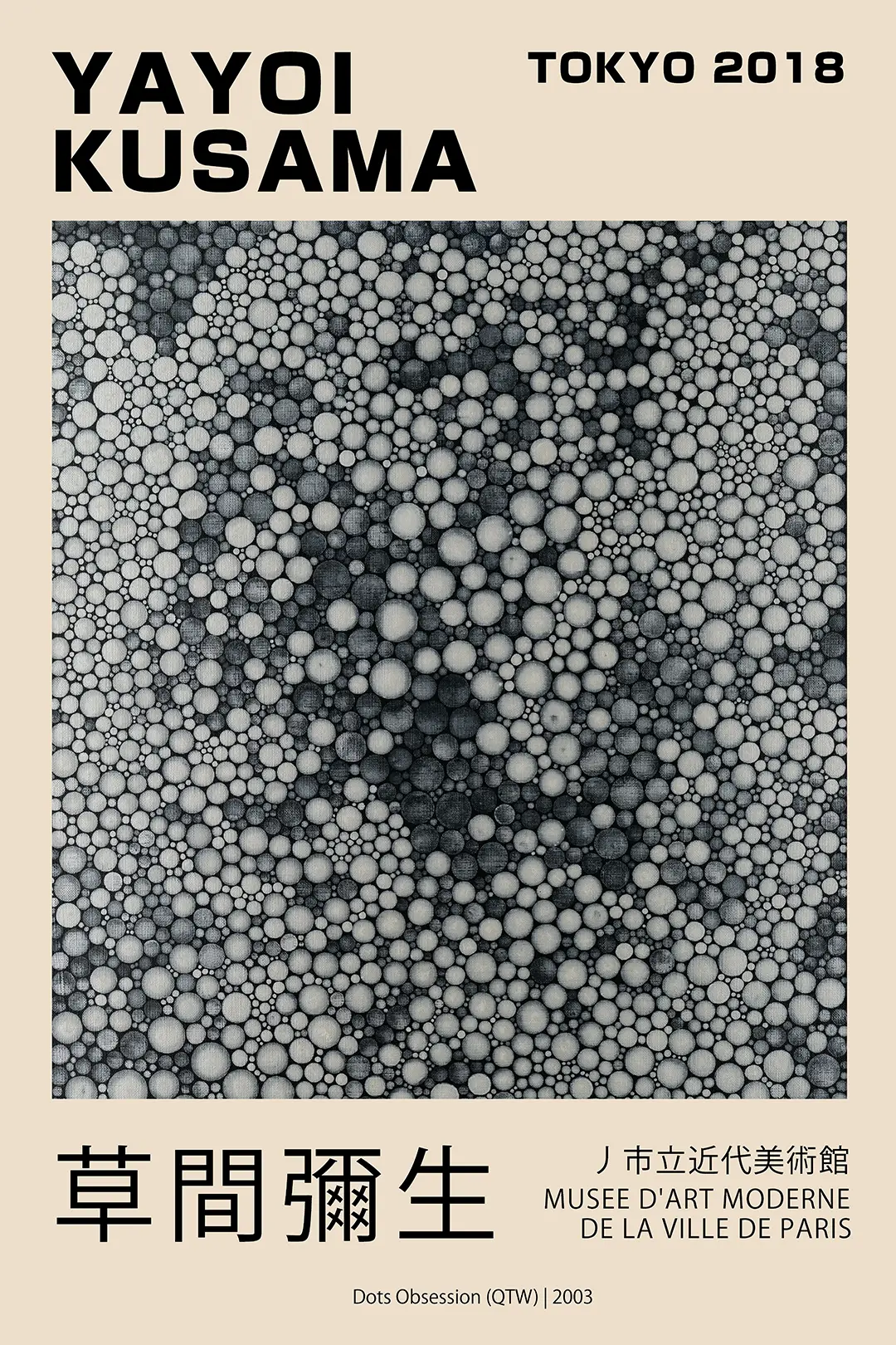 This Yayoi Kusama poster serves as more than just a wall covering; it is an exploration of infinity and obsession. The repeating patterns serve to obliterate the boundaries between the object and its surroundings, a central theme in the artist’s work. By incorporating this print into your decor, you participate in a global appreciation for one of the most significant figures in modern art history. The work invites viewers to lose themselves in the rhythm of the spheres, finding beauty in the infinite repetition of a single shape.