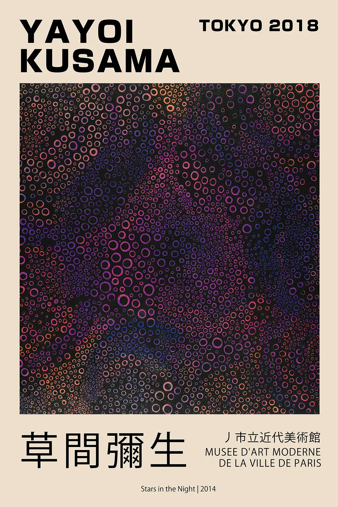The historical significance of the Tokyo 2018 event cannot be overstated. By displaying a Yayoi Kusama poster from this era, you are connecting with a period where the artist’s influence on global modernism reached its peak. The inclusion of Japanese text alongside the French institutional references adds a layer of authentic archival value to the print. Whether placed in a minimalist office, a professional studio, or a residential gallery, the graphic complexity of the Stars in the Night pattern acts as a focal point that defines the surrounding environment.